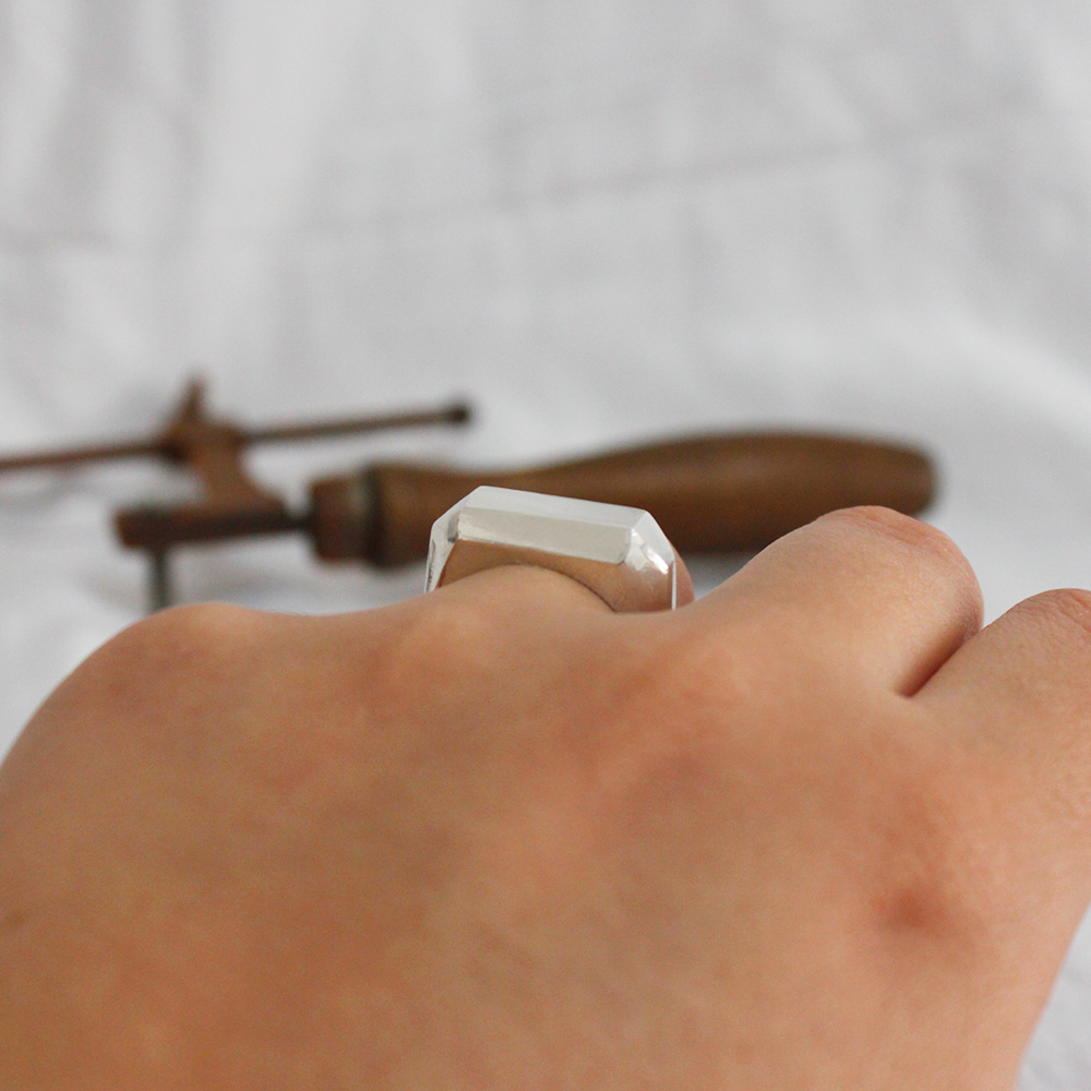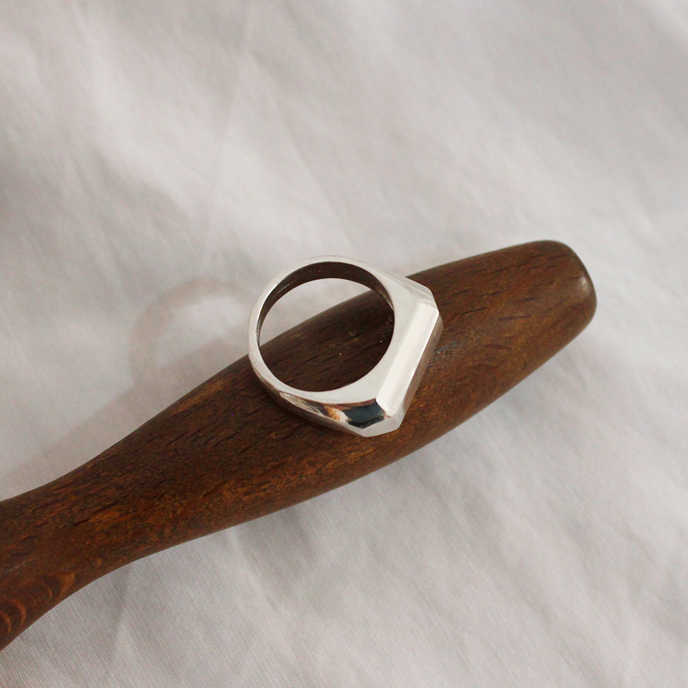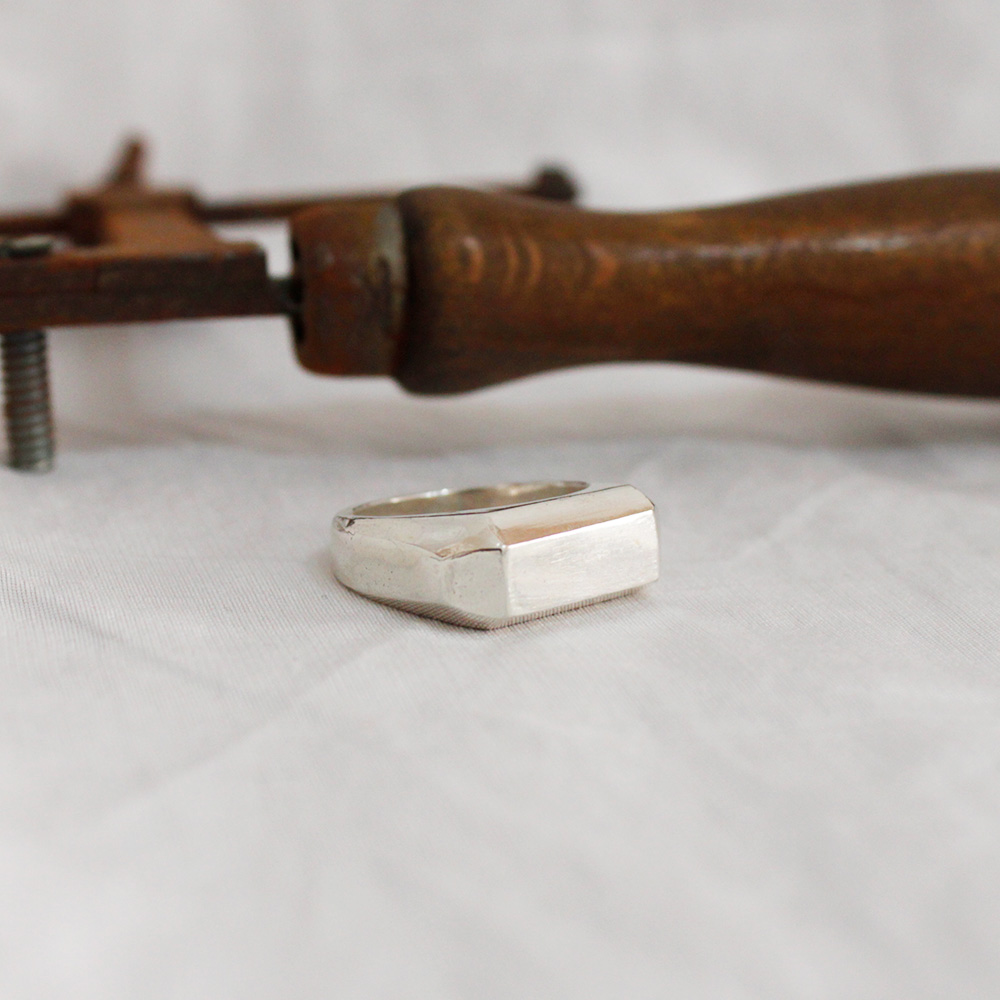 Este anillo, que al principio quería ser un sello rectangular normal, acabo siendo este sello facetado tan distintivo.